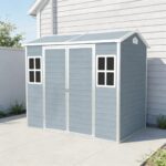 物置 屋外 樹脂製 大型 戸外収納庫 幅190*奥行き243*高210 窓付き 床板付き 頑丈 大容量 サビ防止 防水 ガーデニング 庭 グレー
