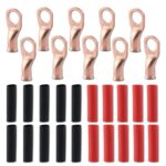 銅線ラグ 10個入り 8 AWG-3/8″ バッテリーラグ カーバッテリーケーブルエンド リング端子 絶縁PVC 熱収縮チューブ付き(20個入) マリンボート 電線接続用