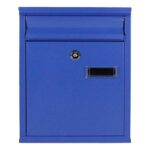 鍵付き小型郵便ポスト、亜鉛メッキシート製屋外用郵便受け、郵便物、新聞、カード用メールボックス、26×11×32cm(Blue)
