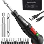 電動ドライバー 充電式 初心者向け USB 小型 安い コードレス 工具 DIY LEDライト 専用ケース付き ドリル ビット 2way L字 ストレート