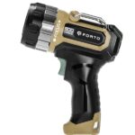 FORTO コンパクト充電式ライト 1400Lm キャンプ 災害 停電 捜索 避難スポット照射から広角照射までのフォーカス付 スタンド付 スポットライト サーチライト 最大照射距離823m 2段階の明るさと点滅の3モード 屋外使用 夜釣り ハイキング ブラウン