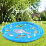 170cm 大型 噴水マット プール 水遊び 子供用 ペット用 家庭プール こども 夏用 庭 テラス 芝生 折りたたみ 滑り止め PVC素材 耐久性 インスタ映え キッズギフト (ブルー, イルカ) [並行輸入品]