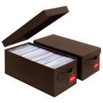 Tapetinel 2点セット ブラウン 厚手不織布 DVD 収納ボックス ― 標準 DVD ケース 25枚 収納可・防塵カバー付き & スタッキング対応 |