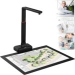 A2ラージフォーマットブック&ドキュメントスキャナー、18MP解像度、360度広角レンズLEDフィルライト付き、OCR多言語サポート、自動平坦化曲面ページテクノロジー、Windowsで動作