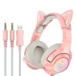 homgee K9 3.5mm 有線ゲーミングヘッドセット 取り外し可能な猫耳ヘッドフォン ノイズキャンセリング Eスポーツイヤホン マイク付き RGB LEDライト 音量コントロール ミュートマイク デスクトップPC用 |