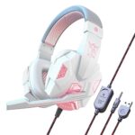 SHIERLENG ステレオゲームヘッドセット ENC ノイズキャンセリング オーバーイヤーヘッドホン マイク付き LEDライト付き PC、PS5、PS4、Xbox One、Switch、ノートパソコン、携帯電話用ピンク |