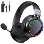 ゲーミングヘッドセット ワイヤレス PS5 へッドセット ゲーミングヘッドホン Bluetooth 5.4/2.4GHz/有線対応|低遅延&7.1chサラウンド|RGBライト付き マイク着脱式|60時間連続使用|Switch/PS4/PS5/PC対応 軽量設計 ブラック |