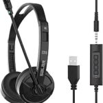 ノイズキャンセリングマイク付きプロフェッショナルビジネスヘッドセット – クリアな通話、試験、オンライン会議用の有線オーバーイヤーPCヘッドフォン ノートパソコンやコンピューターに対応 |