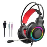 baojielai USB RGBs 光るゲーミングヘッドセット 重低音とノイズキャンセリングマイク付き PCコンピューター用 ソフトメモリーフォーム