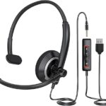 awatrue 片耳USBヘッドセット マイク付き PC用 – 調節可能な軽量コンピューターヘッドセット マイク付き コールセンター、オフィス、3.5mm & USB互換ヘッドホン マイク付き