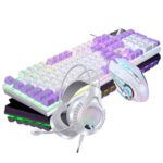 メカニカルタッチキーボード USB有線 パソコン用 デスクトップ ゲーミングオフィス用 マウス ヘッドセットセット 低音静音設計 (ホワイト/パープル) |