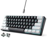 abucow アブカウ 68キーのメカニカルゲーミングキーボード、ブルーバックライトとライトブルーの白いキーキャップ付き – レッドスイッチを使用して、PCおよびMacでのプレミアムなタイピングおよびゲーム体験 (White-Light Blue) |