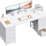 AODK パソコンデスク pcデスク 引き出8杯付き 幅140cm デスク 両袖机 computer desk 省スペース 在宅ワーク ゲーミングデスク オフィスデスク 書斎机 組立簡単 ホワイト |