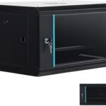 サーバーラック 6U 壁掛け型 ネットワークラック|通気エンクロージャー 0.8mm厚スチール 棚板1枚付 600×350×450mm 鍵付き防犯設計 NAS・ルーター・ハブ収納 組立簡単 オフィス・家庭用 ブラック |