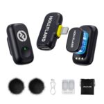 HOLLYLAND LARK A1 Mini Duo ピン-ワイヤレスマイク iPhone 14/13/12 用(トランスミッター×2 + Lightningレシーバー×1)、YouTube、TikTok、ポッドキャスト、Vlogging 用マグネット (Mini Combo TypeC)