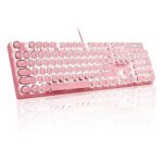 MageGee Typewriter Mechanical Gaming Keyboard, Retro Punk Round Keycap LED White Backlit USB Wired Keyboards for Game and Office, for Windows Laptop PC Mac – Blue Switches/Pink