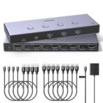 UGREEN 8K@60Hz HDMI KVM切替器 4コンピュータ用 4*USB 3.0ポート付き アルミKVMスイッチ 4入力1出力 4K@240H対応 1モニタ/キーボード/マウス/ハードドライブ/プリンタを共有 HDMIケーブル4本、USBケーブル4本、デスクトップコントローラ付き