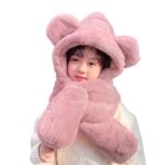 [LONTG] 冬帽子 子供 クマ耳 帽子 フード付きマフラー ポケット手袋 一体型 防寒帽子 キッズ 人造毛皮帽子 可愛い クマの帽子 ふわふわ ファー付き帽子 ボアマフラー 厚手 アニマル帽子 女の子 男の子 秋冬 防寒対策 ピンク |