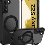 【Newnugds】Galaxy S22 ケース【MagSafeリング・スタンド一体】スタンド付きマグネット搭載 縦横両対応 米軍MIL規格 耐衝撃 マット感 半透明 指紋防止 黄変防止 カメラレンズ保護 ギャラクシー S22カバー 6.1 インチ ケースワイアレス充電対応 ストラップホール付きGalaxy S22-ブラック |