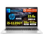 【整備済み品】HP ノートパソコン 450G8/15.6型/第11世代Corei5-1135G7/メモリ 16GB/SSD 512GB/Win 11/MS Office 2019/無線WIFI/USB 3.1/Type-C 3.1/HDMI/指紋認証/WEBカメラマイク/大型タッチパッド/初期設定済 |