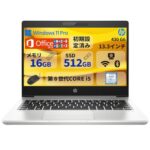 【整備済み品】H P ノートパソコン/15.6型/第7世代 Core i5/450 G5/メモリ 16GB/SSD 512GB/Windows 11 Pro/MS Office 2019/USB 3.0/Type-C/無線WIFI/HDMI/テンキー/Webカメラ |