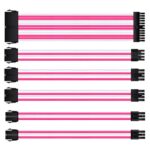 【スモールラボ】2色スリーブケーブル 延長ケーブル 30cm 24pin 8pin(6+2pin×2、4+4pin×1) 6pin×2 マザーボード グラフィックボード 電源ユニット ケーブルコーム付き (ピンク/ホワイト) |