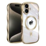 【ウェーブエッジ&高級なメッキ加工】 JOOBOY スマホケース 対応 iPhone 17 ケース MagSafe対応 クリア 透明 レンズフィルム保護カバー 波形 高級なTPU素材 ソフト 衝撃吸収 ストラップホール付き アイフォン17 携帯電話カバー (ゴールド, iPhone 17) |