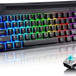 メカニカルゲーミングキーボード Bluetooth ワイヤレス 有線接続、充電式Type-Cケーブルキーボード、プログラム可能 61キー メカニカル RGB キーボード コンピューター、PC、MAC、Windows、LinuxVista (青ー青軸) |