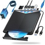 外付けブルーレイドライブ互換バーナードライブ USB-A/Type-C 5-in-1 ディスクリーダー BD/DVD/CDプレーヤーの再生/読み取り/書き込み/書き込みをサポート ポータブルブルーレイドライブ Windows/Macと互換性あり USB/Type-Cポートを備えた外付けブルーレイドライブ 使いやすい |