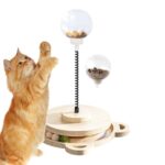 犬用パズルボール,ウッディトラックゲーム,スプリングポールキャットトリートボール付き | インタラクティブスローフィーディングトレーニング用 退屈解消 メンタル刺激 |