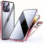 覗き見防止 iPhone 13用 ケース ロック付き アルミ バンパー メタルフレーム スマホケース 強化ガラスフィルム 一体型レンズ保護 マグネット式アイフォン13 両面ケース,ピンク |