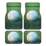 芝生の上の緑のサッカーボールの車用フットマット 4 点セット – SUV、トラック、セダン用のフロント & リア ユニバーサル カー フロアマット |