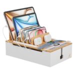竹製WiFiルーター収納キャビネット、フロアスタンディングルーターボックスハイダー、調節可能な棚付き、モデムと電源タップオーガナイザー、自宅やオフィス用ケーブル管理、ホワイト、L |