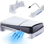 新型 PS5 Slim用冷却ファン AriKroii【新登場 一 体型設計&効率的な冷却システム】ps5 冷却ファンps5 周辺機器 PS5新型対応アクセサリーUSB 3.0 風速調整可能 低騒音 LEDライト付き装着簡単 排熱 ps5 冷却熱対策 急速冷却 プレステ5スリム用高性能冷却ファン 低騒音 低ノイズ ディスク/デジタル版の両対応