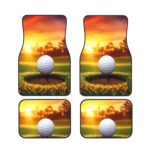 車用フットマット4点セット、ネオプレン製自動車フロアマットカーペット、フロントリア自動車フロアマットセット/スポーツゴルフボールサンセットツリー/SUV、セダン、トラックにユニバーサルフィット |