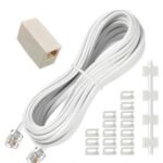 電話線 7.6m 電話延長コード モジュラーケーブル オステレホンケーブル 軽量 爪折れ防止 純銅線コア RJ11 6P4C ケーブルクリップ20個とインラインカプラー1個付き 中継延長アダプタ 電話、ファクシミリ、モデム、応答機用(ホワイト) |