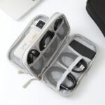 2層トラベルケーブルとアクセサリーバッグ1点。ポータブル収納バッグ。ケーブル、USBデータケーブル、充電器、携帯電話、イヤホンなどの収納に適しています。(グレー) |