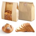 35 Pack Paper Bread Bags for Homemade Bread, Paper Bakery Bag for Baked Food Packaging Storage, Large Kraft Paper Bread Loaf Bag with Window Label Seal Sticker included Pack of 35,12.5×8.3×4 Inches