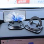 360度回転する車用ヘッドレストタブレットホルダー – ユニバーサルスナップオン式調節可能マウント。携帯電話やタブレット用。 |