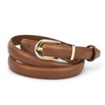 [アルフィリ] ベルト レディース レディースベルト べると 女性用 オフィスベルト ビジネススーツ対応 細め belt for womenサイズ展開 ゴールドバックル フォーマル(ブラウン,115cm) |