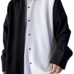 [エンプティオ] バイカラー シャツ ビジネスカジュアル ポケットなし 襟付き メンズ キレイ サラサラ ストリート ツートン ツルツル テロテロ フォーマル レトロ ワイシャツ ドレス ボタン リラックス エスニック 韓国風 お洒落 柔らか ロングスリーブ モード オフィス オフィスカジュアル アジアンフィット 切り替え モード系 カジュアルシャツ 切替 ドレスコード 白黒 (M) ブラック |