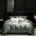 4 PCS羽毛布団カバーセット、寝具セットファッショナブルでシンプルなスタイルフレンチソリッドカラーソフトな通気性寝具閉鎖、豪華な通気性キルトカバーすべての羽毛布団カバーセット(グレー、クイーン) |