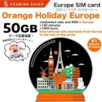 【Orange Holiday 物理SIM、データ量 アップ!】ヨーロッパプリペイドSIMカード【電話番号付き】4G LTE通信30日間50GB国際電話120分・SMS 1000通 |