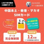 【中国 sim】12日間 完全無制限・高速データ通信|中国・香港・マカオ対応|中国本土でもGoogle・LINE・YouTube利用可能|24時間サポート|中国本土 プリペイドSIM 中国本土・香港・マカオ SIMカード (12日間|無制限) |