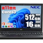 【整備済み品】 第11世代 Core i3 1115G4 最大 4.10GHz / メモリ 16GB / SSD 512GB / MS Office 2019 / Windows 11 / テンキー Wi-Fi 15.6インチ HD液晶 DVDROM オフィス 中古 ノート パソコン PC-VKL41XZGA VX-A/NEC VersaPro タイプVX |