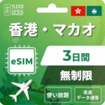 【香港・マカオeSIM】3日間完全無制限(使い放題) LINE相談受付中|データ通信専用(電話番号なし) | simフリー端末のみ対応 説明書付 イーシム simless