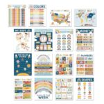 英語のポスターキッズ – 16倍の教育壁チャート、子供を学ぶ子供、教材、教室スタイルの再学習プリントビジュアルホームスクールツール|クリアイラストの楽しい色のレイアウト |