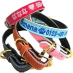 首輪 犬 小型犬 中型犬 犬用 首輪 迷子札 名入れ 名前入り オリジナル うちの子 おしゃれ かわいい 安全安心 ペット用品ピンク S [27-34.5cm]【刺繍糸:レッド フォント:ゴシック ワンポ:足跡】 |