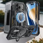 iPhone 17 Pro用ケース ベルトクリップホルスターリングホルダー 磁気キックスタンド ミリタリーグレード 耐衝撃 保護 頑丈 保護 頑丈 携帯電話カバー – 6.3インチ (ブラック) |