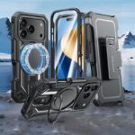 iPhone 17 Pro-Max用ケース ベルトクリップホルスターリングホルダー 磁気キックスタンド ミリタリーグレード 耐衝撃 保護 頑丈 保護 頑丈 携帯電話カバー – 6.9インチ (ブラック) |